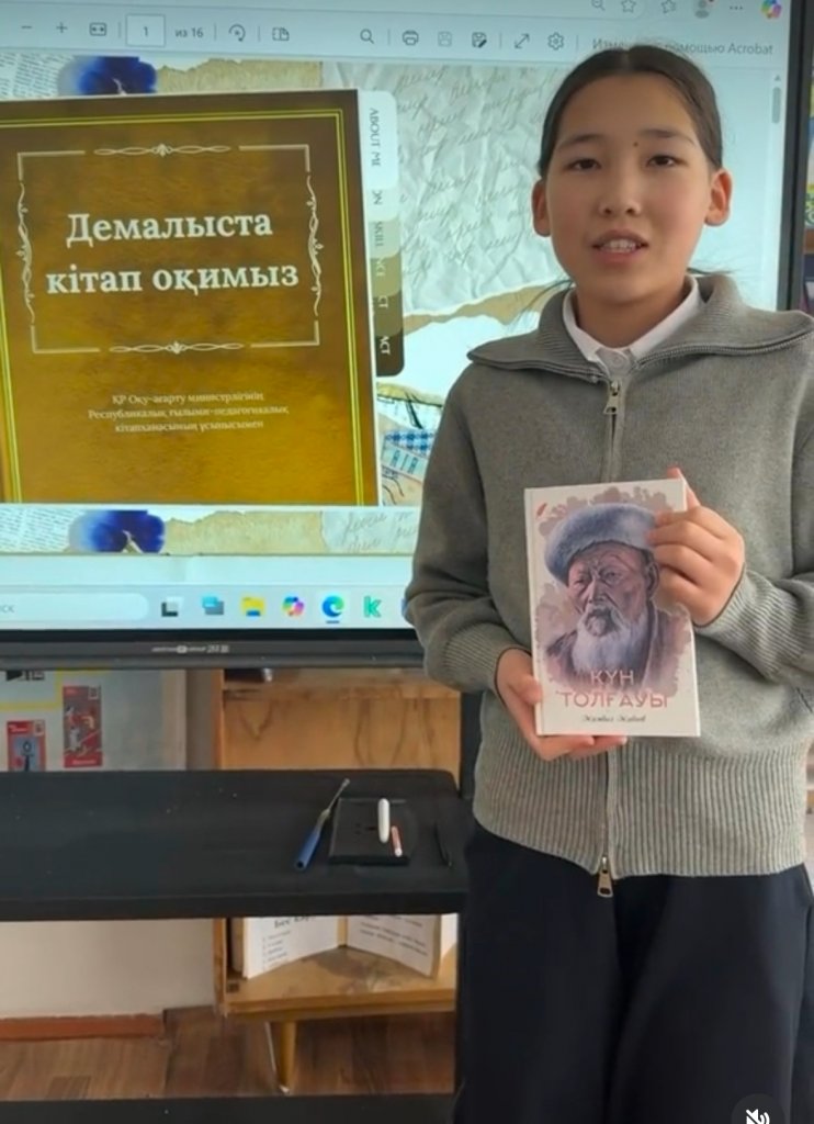 Демалыста кітап оқимыз” жобасы аясында 8-сынып оқушысы Жұмабай Амира Жамбыл Жабаевтың “Күн толғауы” өлең жинағын оқып, өз әсерімен бөлісті.
