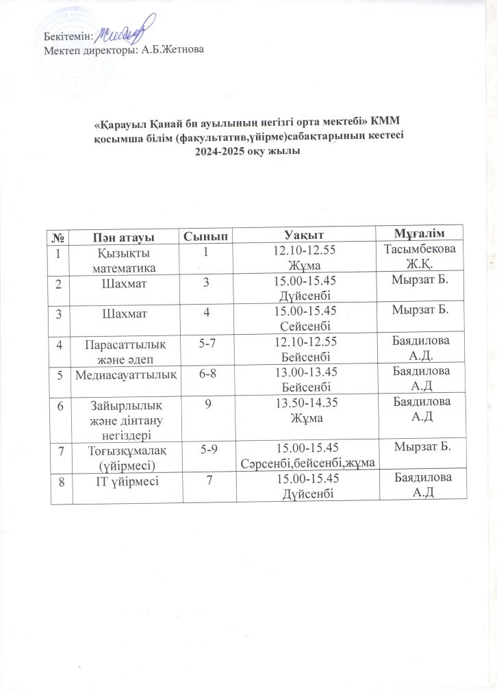 Факультатив кестесі 2024-2025 оқу жылы